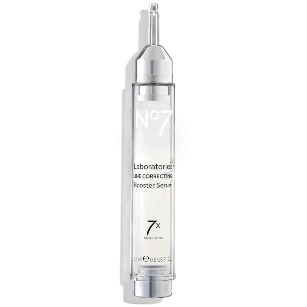 No7 Line Correcting Booster Serum visibly reduces wrinkles in one week.* It's formulated with MATRIXYL 3000 PLUS™, No7's next generation age-defying collagen peptide-based technology. Apply this serum before moisturizers, oils, primers and makeup. You can also use as a booster by mixing 1 or 2 drops into your moisturizer, eye cream or foundation to supercharge your favorite product with a boost of line-smoothing power. In 1 week using No7 Line Correcting Booster Serum, women saw a visible reduction in the appearance of lines and wrinkles on the forehead and around the eyes.